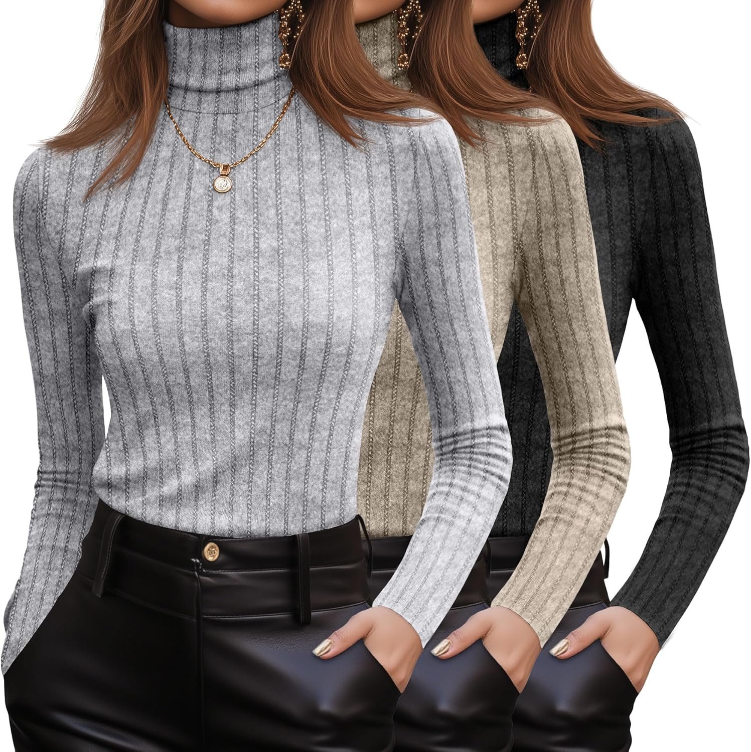 3 Pack Women’s Turtleneck Sweaters, Ribbed Long Sleeve Fitted Pullover Sweater Knit Lightweight Fall Tunic Top 2025