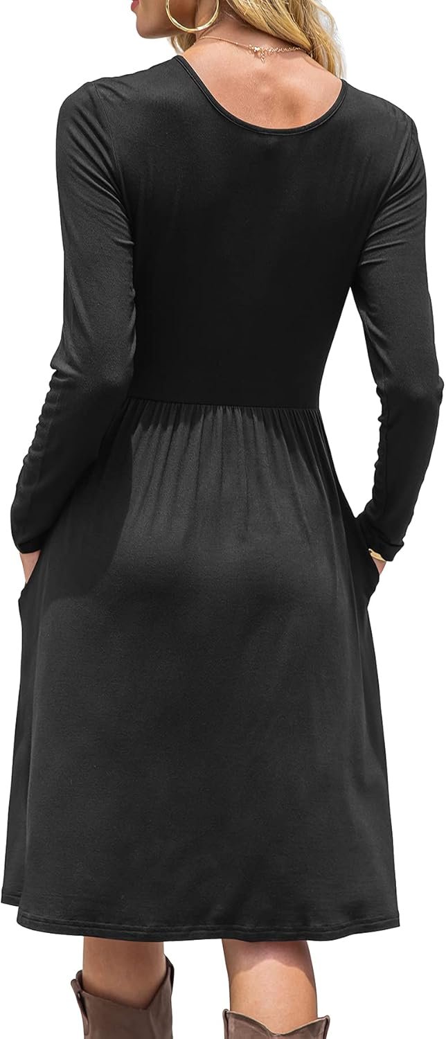- [Features] : Round neck, Long sleeve, elastic waist and pockets. This dress is lightweight and casual, There is an elastic band at the waist seam.