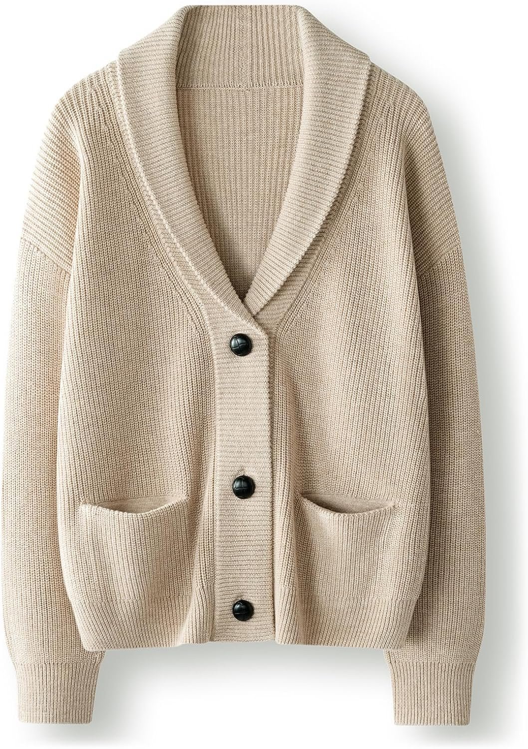 - Features: Medium thickness. Normal fit, classic cardigan style, long sleeves, shawl lapel and with pocket design, ribbed cuffs. V-neck elongates neckline,High elasticity, Lightweight, soft, very comfortable to wear. This merino wool sweater is suitable for spring, fall and winter.