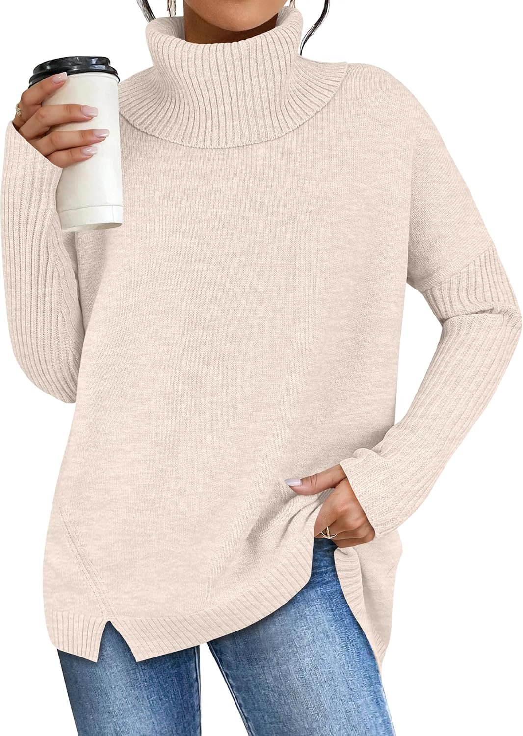 - Features – This oversized sweater top for women features classic turtleneck, long sleeve,stylish side splits and hemline,tunic top sweater,knitwear casual style. you can dress it for any casual occasions, It will be your favorite in your wardrobe.