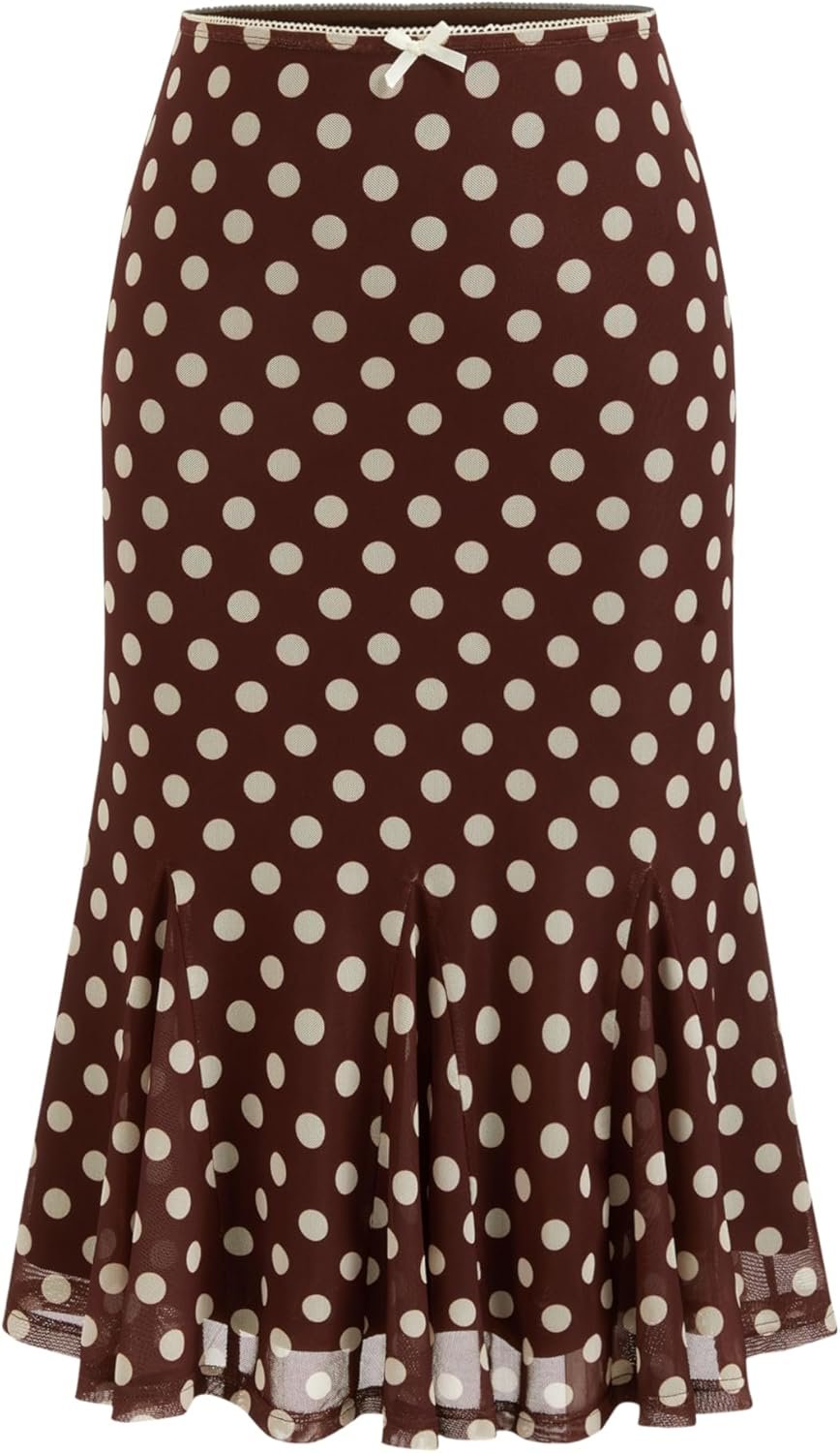 - Charming Polka Dot Design: This midi skirt features a classic and elegant polka dot pattern that delivers a timeless vintage appeal, perfect for adding a touch of retro charm to your outfit
