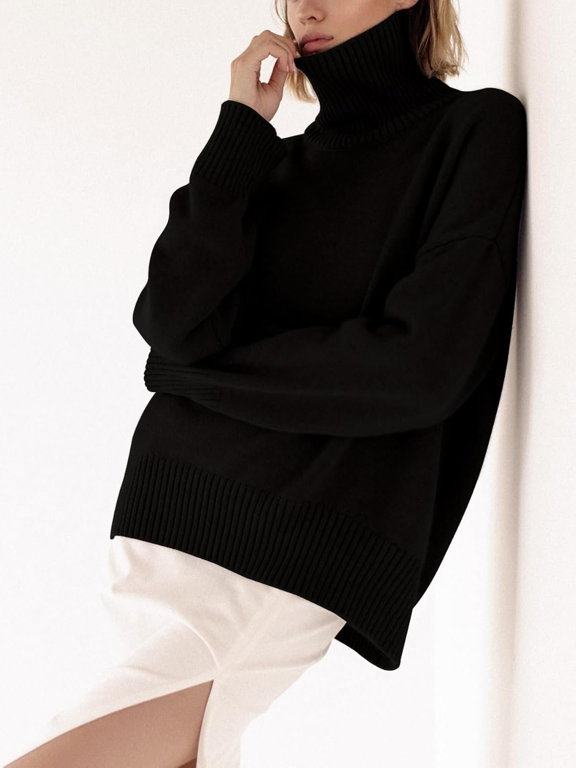 - Design: Chunky knitted pullover sweater is designed with a turtle neck, perfect to defend cold. Simple solid color, suitable for clothing matching. Particularly beautiful detail for this sweater is High Low Hem design. Its casual look fits our lifestyle perfectly.