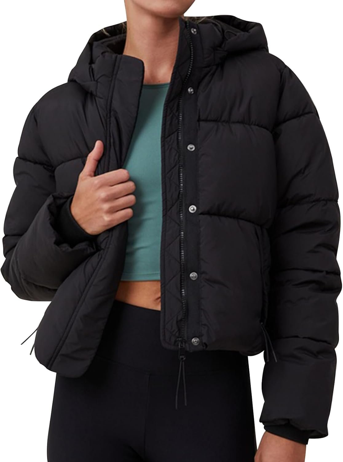 Women’s Winter Cropped Puffer Jacket, Full Zip Thicken Short Coat with Detachable Hood